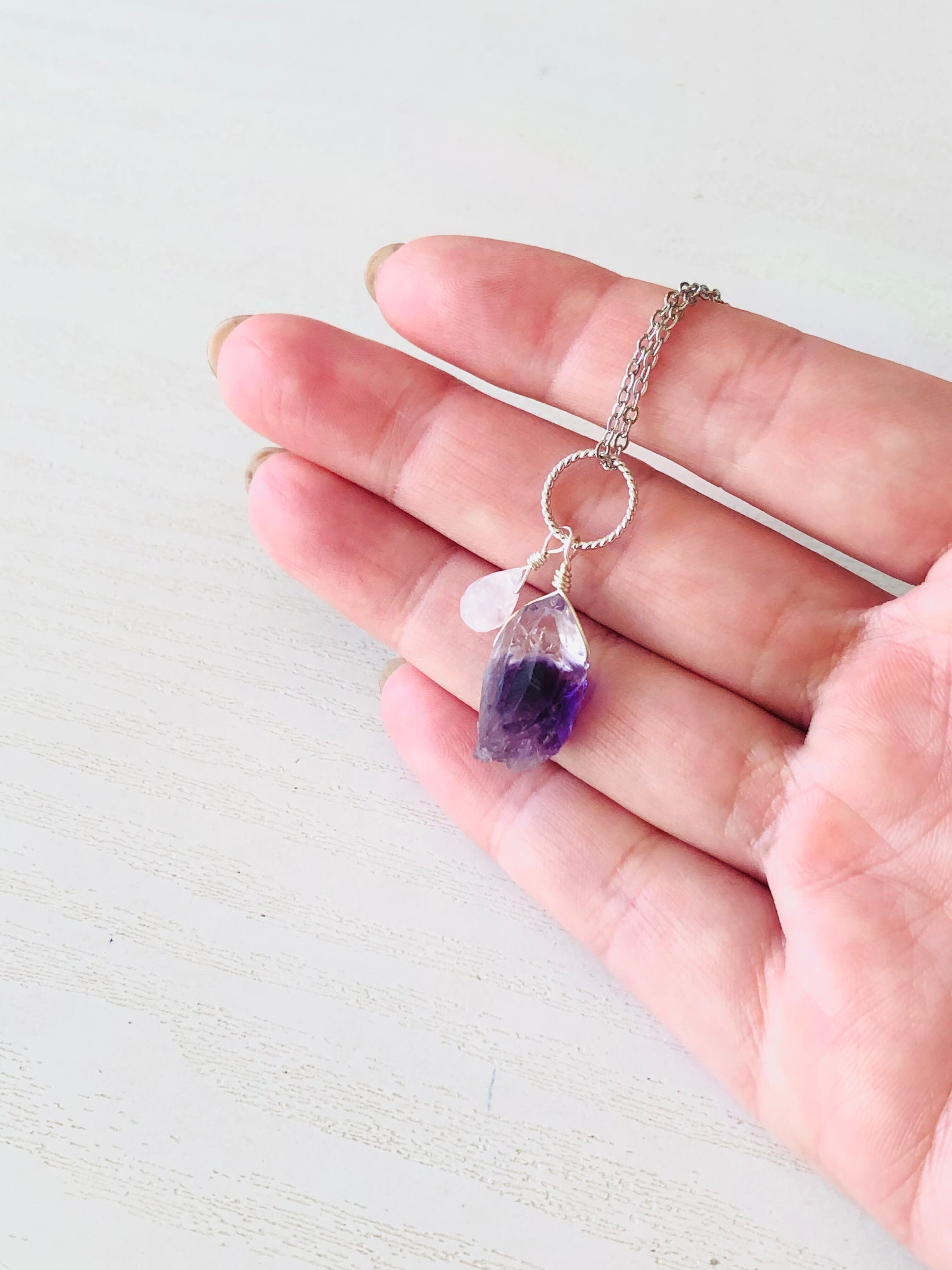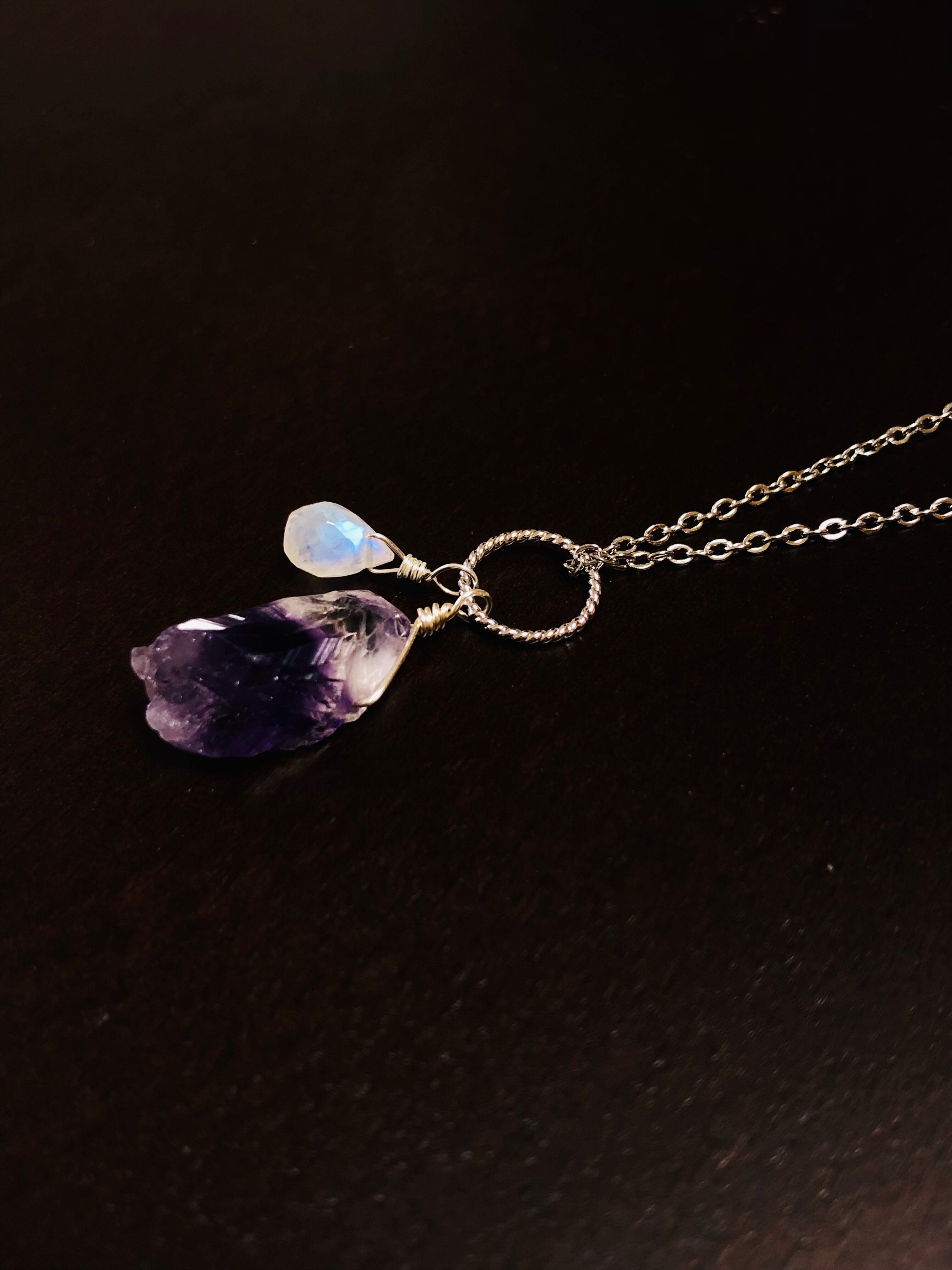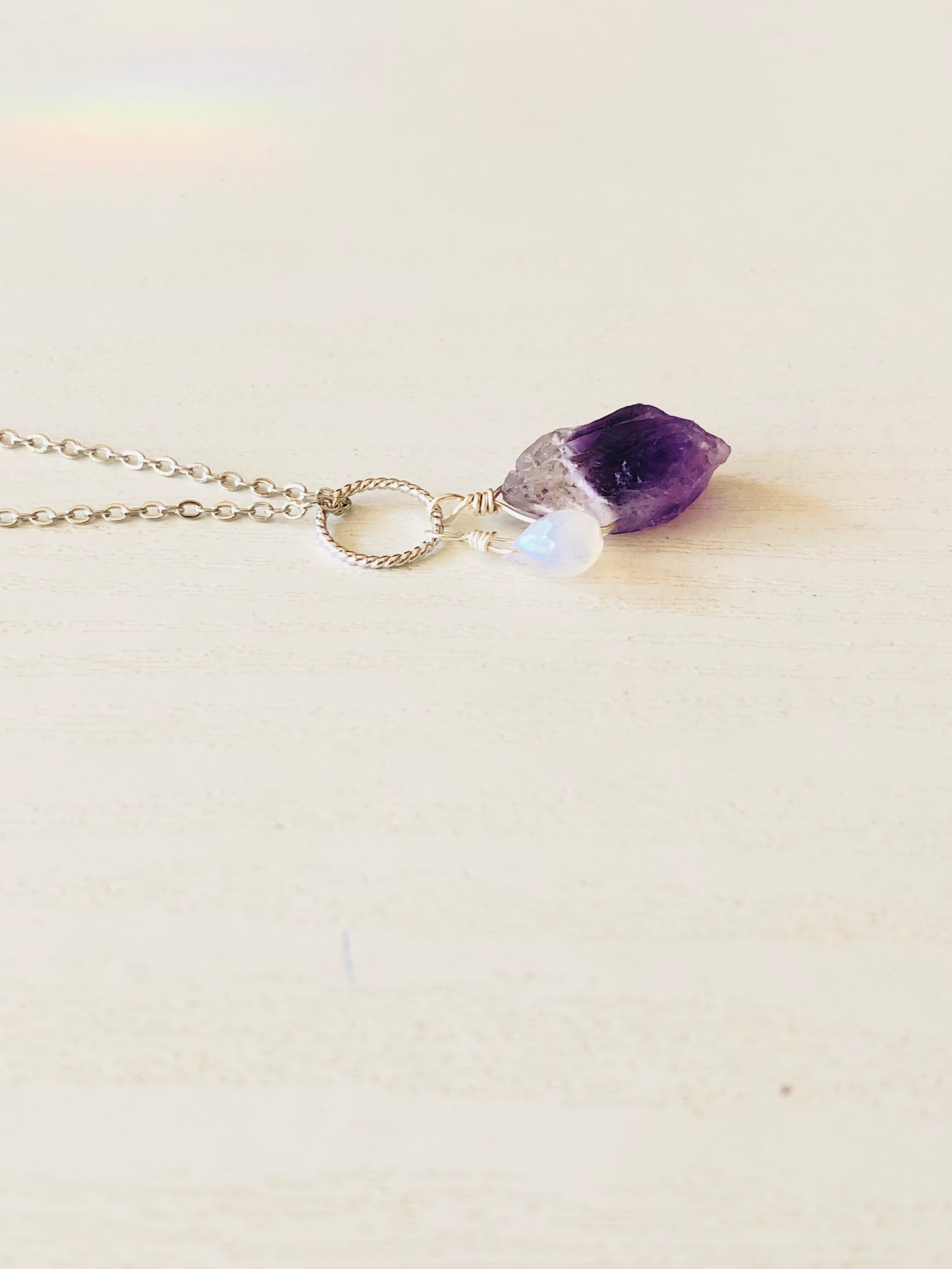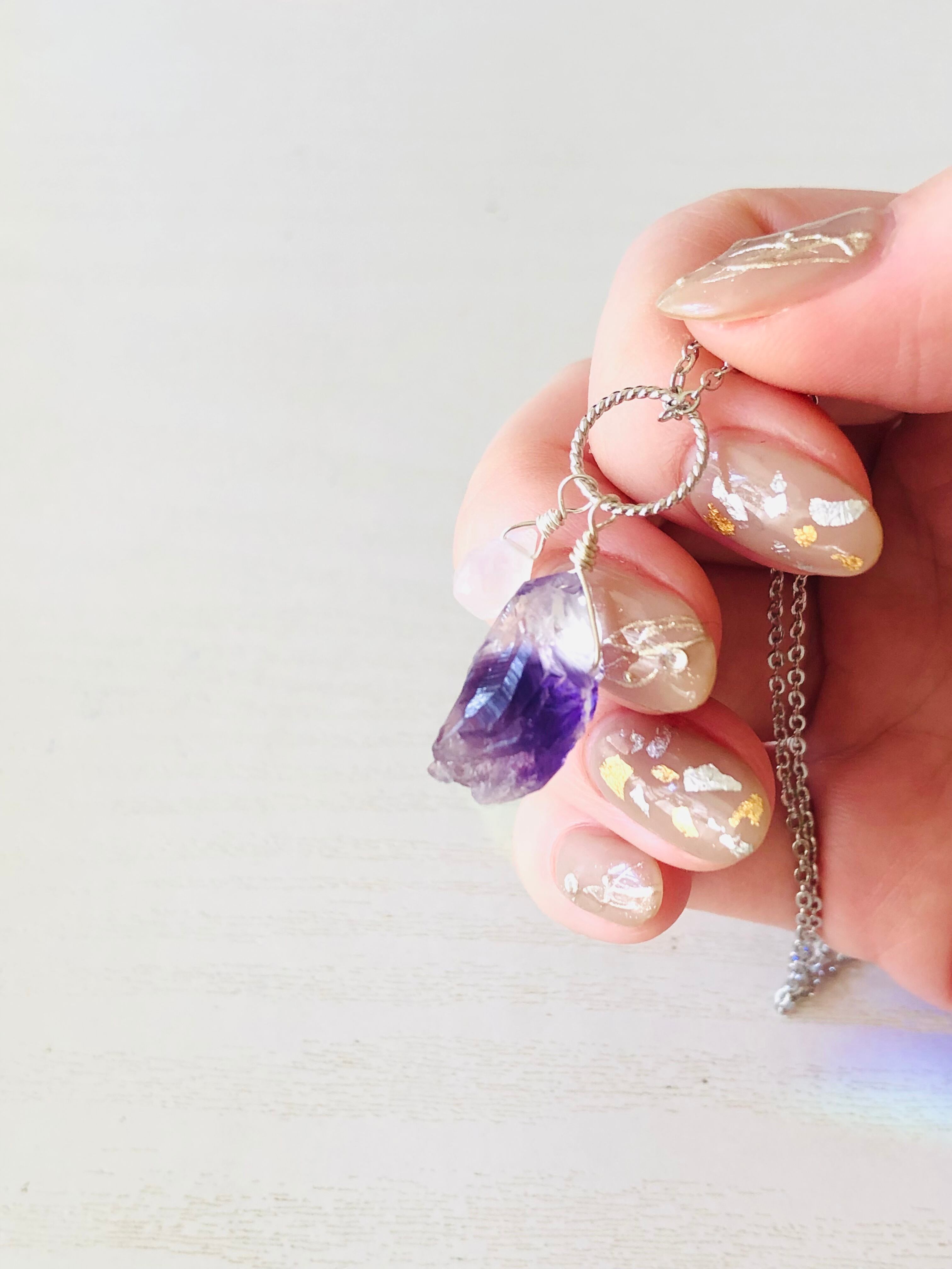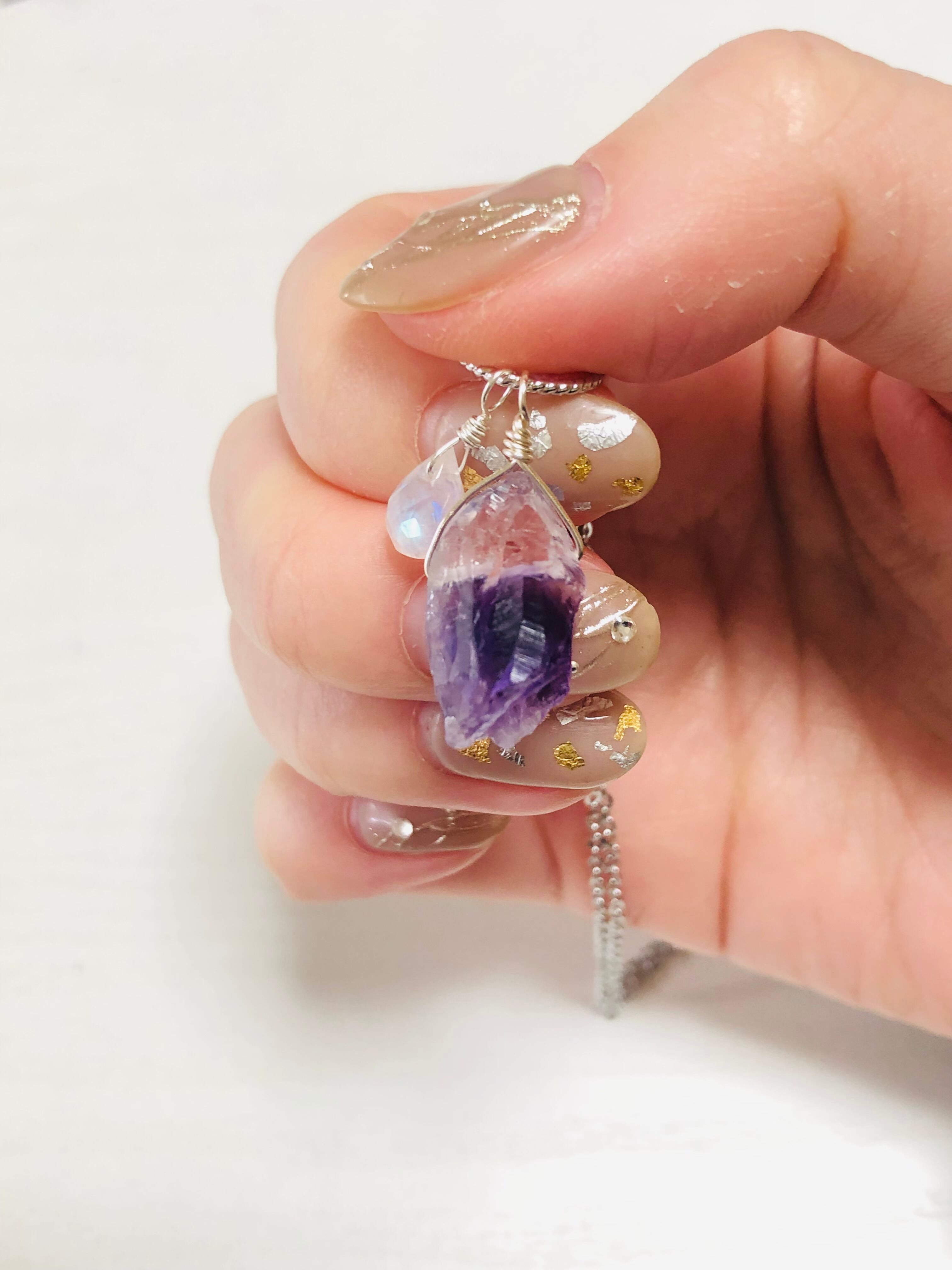 カチ割りアメジストとレインボームーンストーンのネックレス