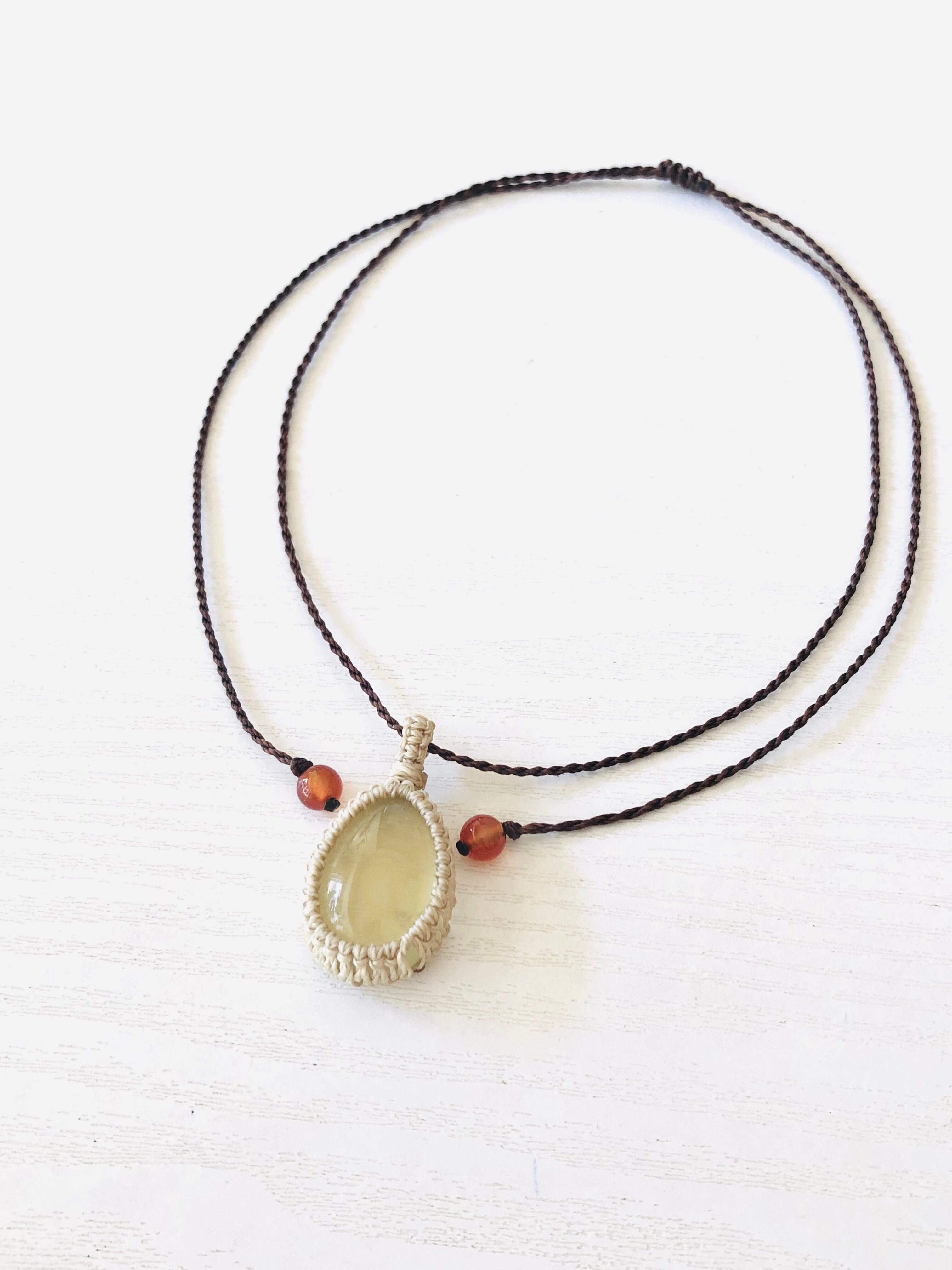 レモンクォーツのマクラメ編みネックレス